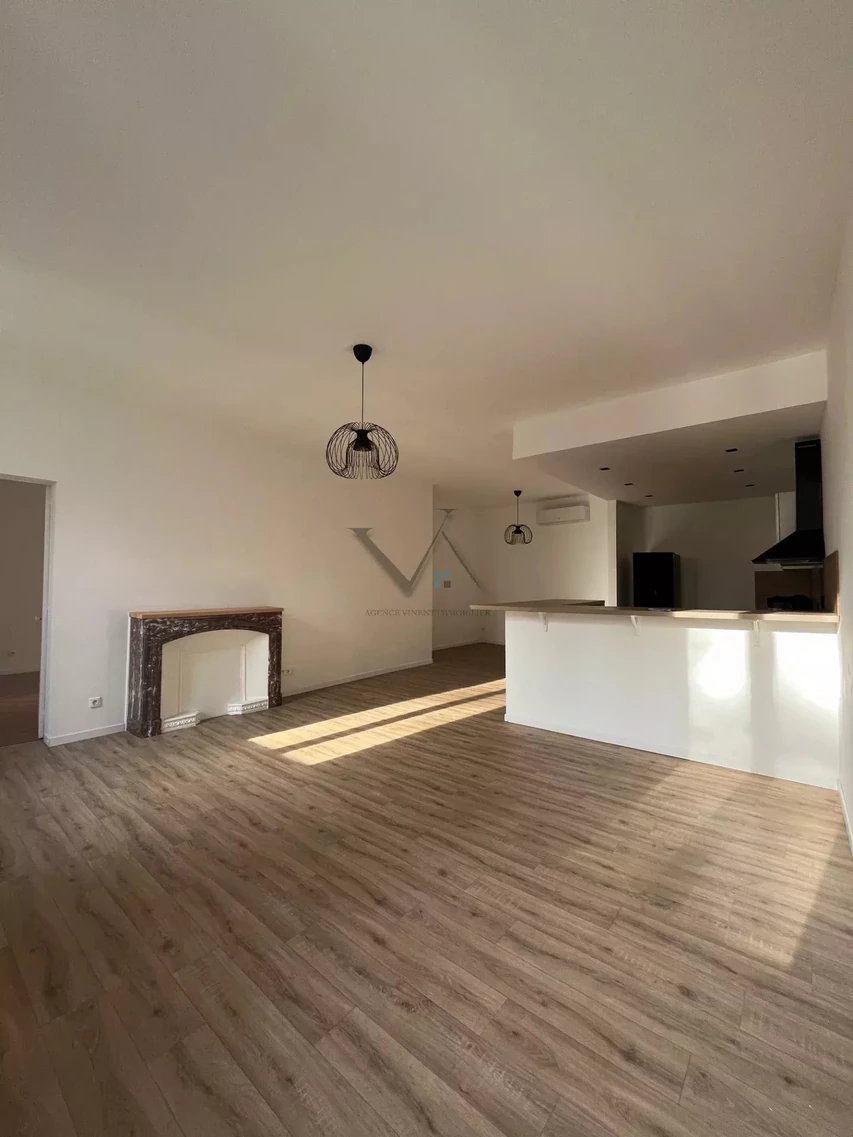 Centre ville, 17 Bd du Fust, dans petite Copropriété paisible et sécurisée, bel appartement ancien, rénové et en TBE, d'une surface habitable de 110 m², situé au 1er étage sans ascenseur, comprenant un grand hall d'entrée climatisé, un espace cuisine entièrement équipée ouvert/pièce de vie (climatisée), WC, salle d'eau, 3 chambres avec rangements. Le chauffage est individuel par climatiseurs et caloporteurs dans les chambres. La prov./charge comprend la TOM -DISPONIBLE -