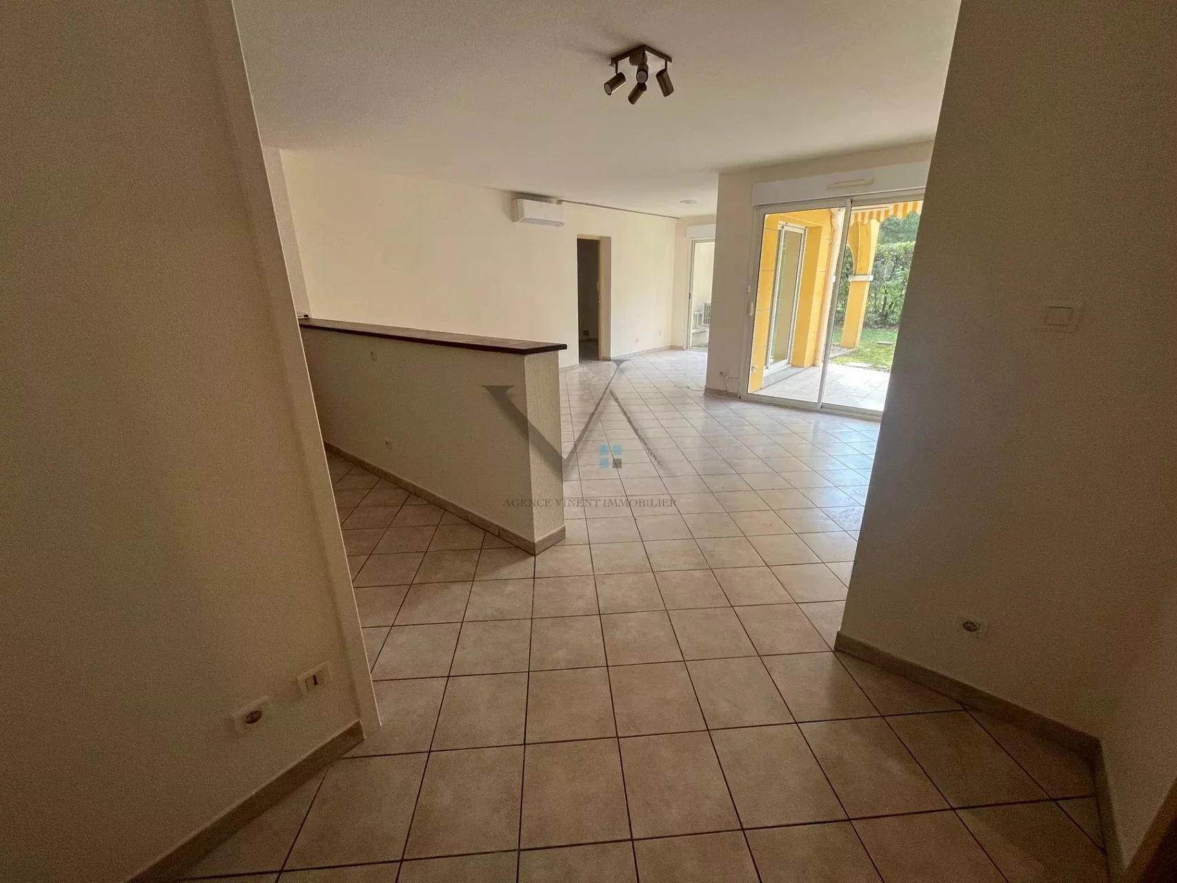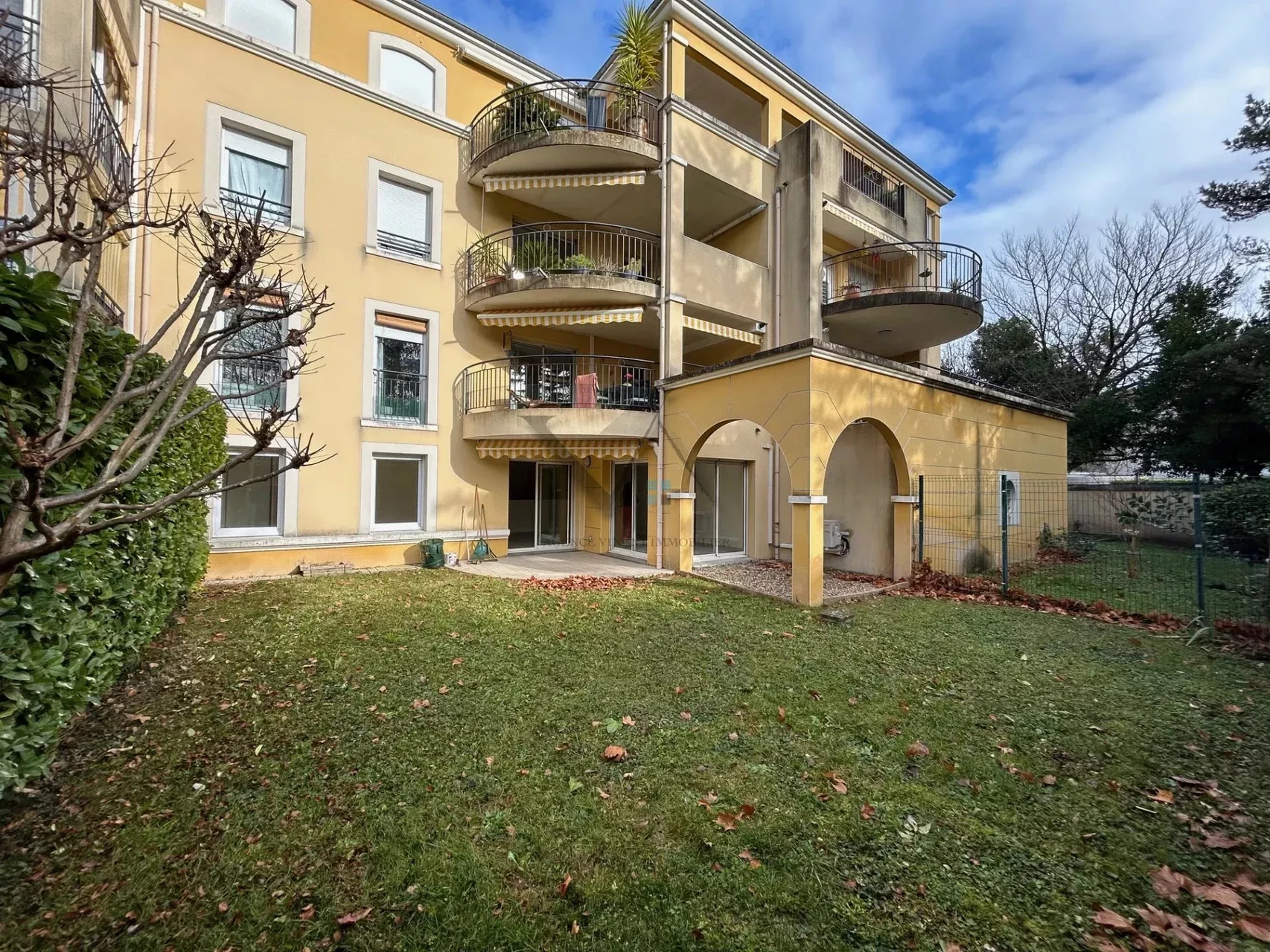 Dans belle Copropriété résidentielle, verdoyante et sécurisée, "LE CLOS BEAUMIRAL", proche du centre ville et de ses commodités, confortable appartement en rez-de-jardin, de type 3, d'une surface habitable de 83 M², comprenant : un petit hall d'entrée avec placard mural, un espace cuisine semi équipée ouvert/séjour climatisé donnant/terrasse et jardinet, cellier, une pièce "bureau", deux chambres dont une avec rangements, WC, salle d'eau, garage communiquant avec l'appartement, parking privatif. Le chauffage est individuel électrique par radiateurs à inertie. La prov./charges comprend la TOM, l'eau froide et les communs. DISPONIBLE -