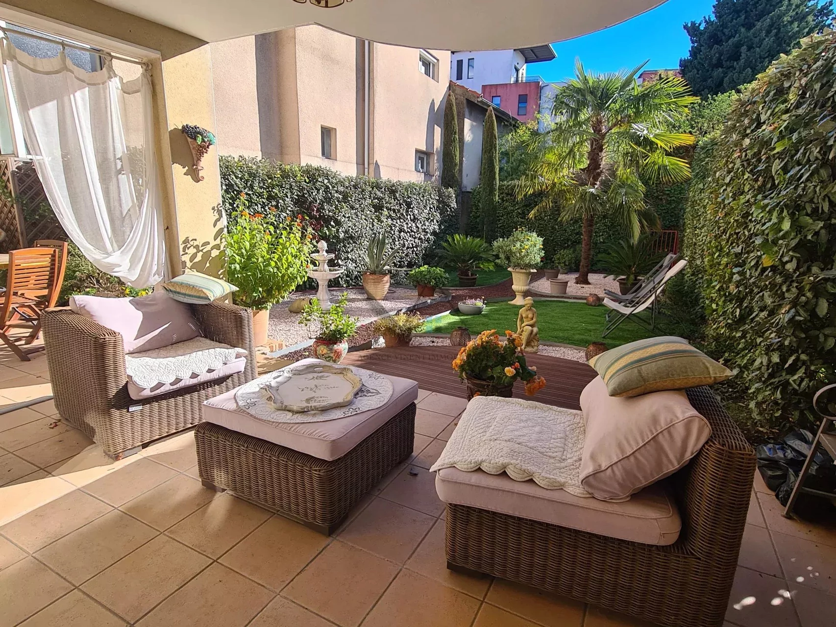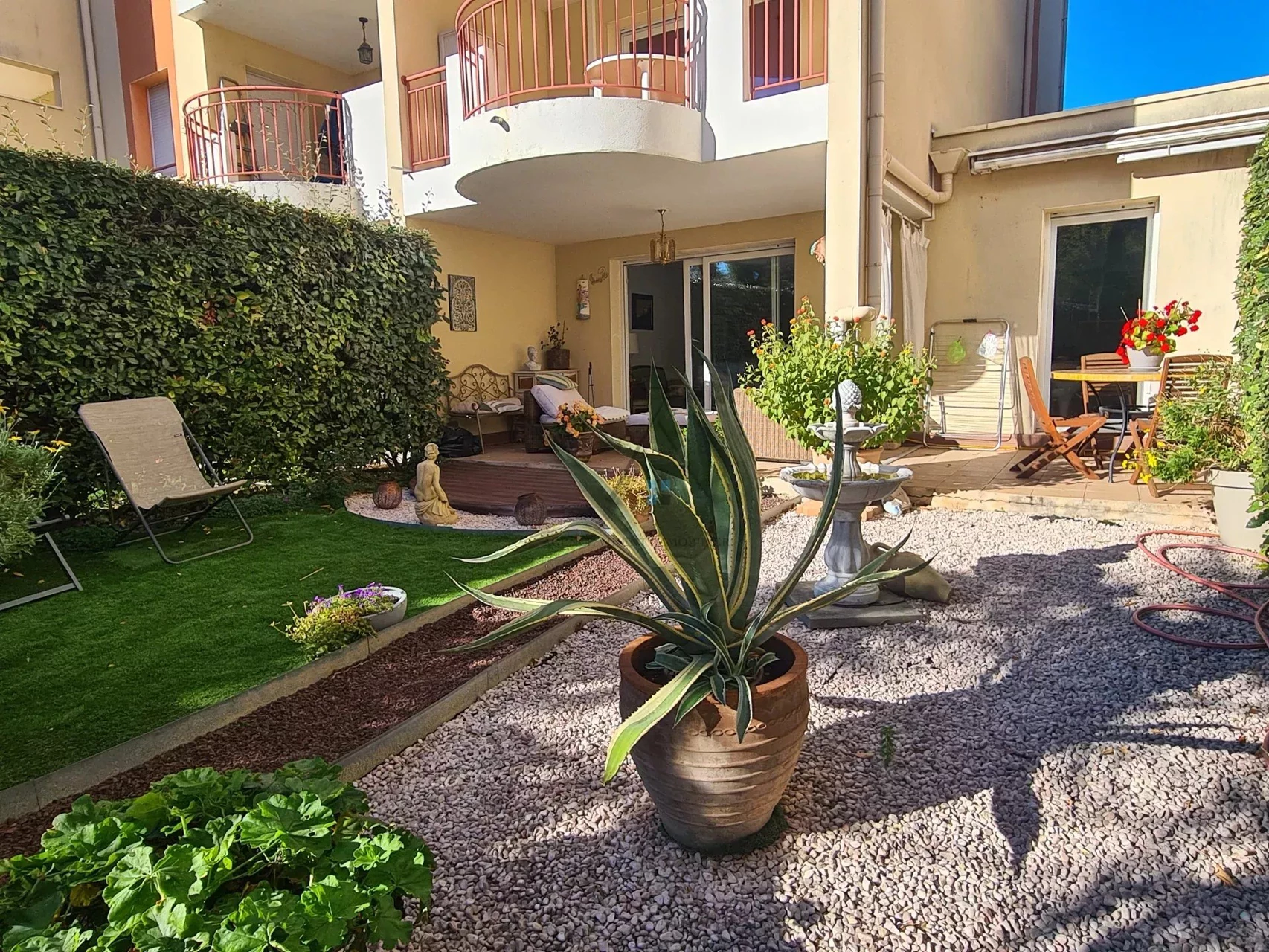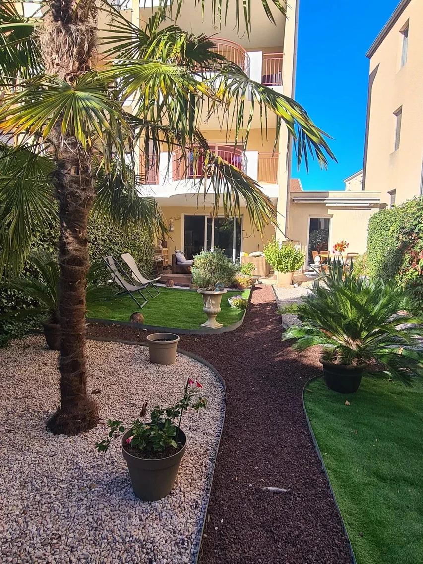 Montélimar, dans résidence sécurisée et résidentielle de 2008, proche du centre-ville à pieds. Appartement en rez de jardin de 105m² habitable environ, avec terrasse, jardinet paysagé, cave, place de parking en sous-sol et garage indépendant.