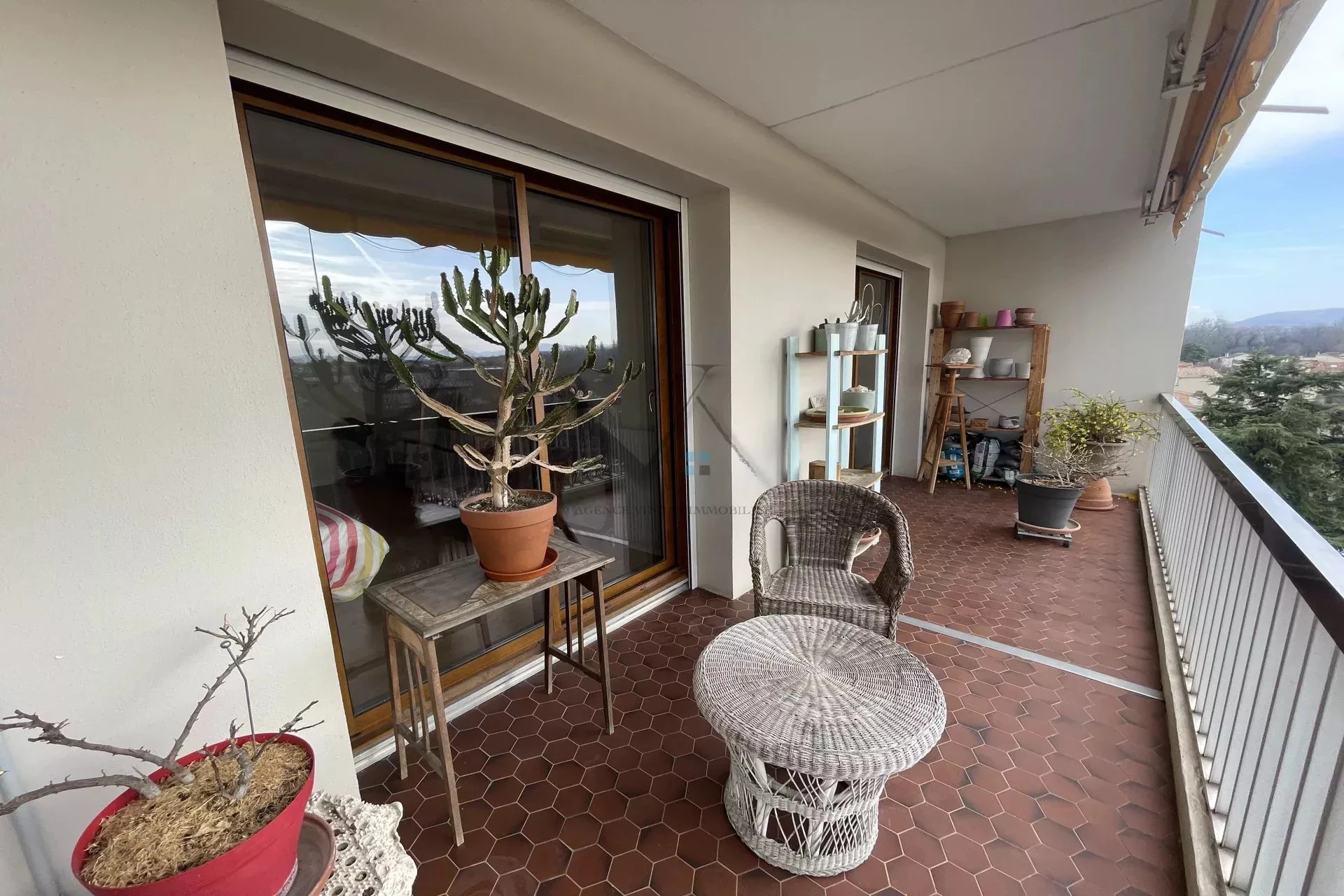 L’appartement se compose d’un hall d’entrée avec placard, d’une cuisine indépendante ouvrant sur une terrasse de 8 m² avec vue dégagée sur le Roubion, ainsi que d’une spacieuse pièce de vie lumineuse de 34 m², donnant accès à une terrasse de 24 m².