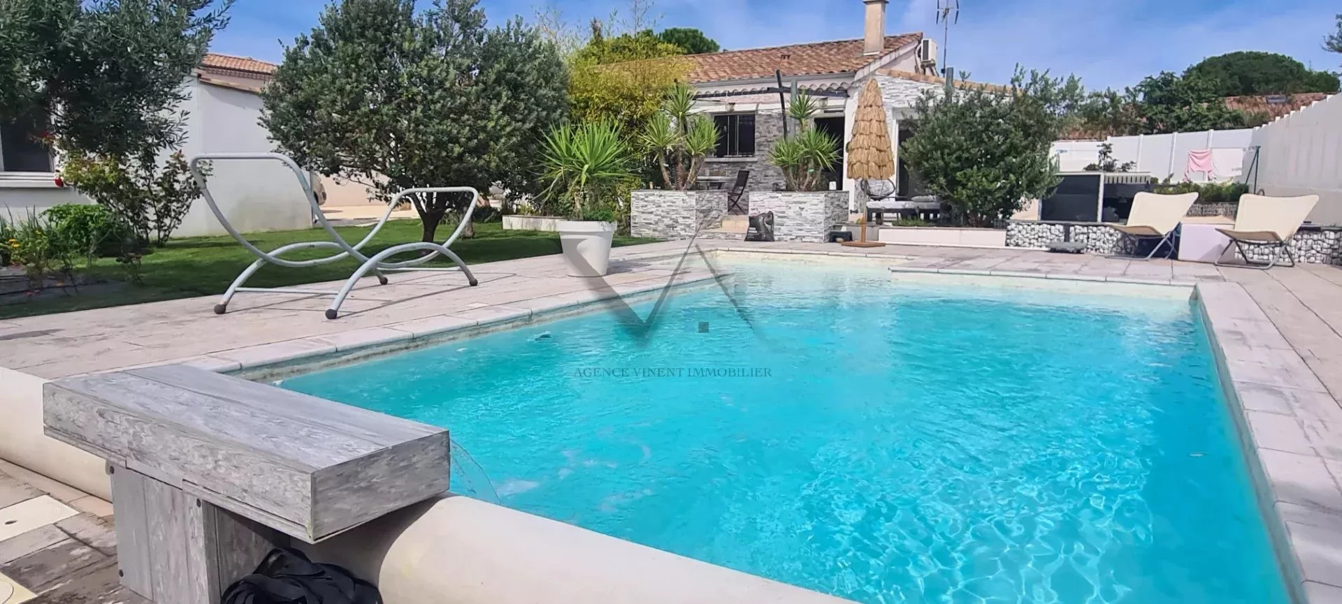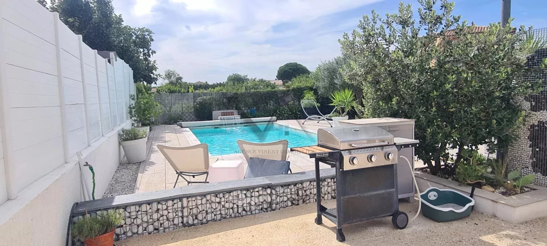 Montélimar, Ville de plain pied de 2004, avec extension de 2011 de 134m² habitable environ avec studio indépendant et double garage, sur un terrain paysagé de 803m² avec forage et arrosage intégré. Une belle piscine 8x4 au brome, chauffée par PAC vous permettra de prolonger vos moments de baignade; Pour vos soirées d'été: Une terrasse carrelée avec sa pergola et son jeux de boules agrémente ce bien et lui confère un cadre de vie très agréable. Le bien se compose d'une grande pièce de vie avec sa cuisine ouverte et entièrement équipée, de 3 chambres et d'un bureau, ainsi qu'une grande salle d'eau, et une arrière cuisine ainsi qu'un espace cellier et buanderie.