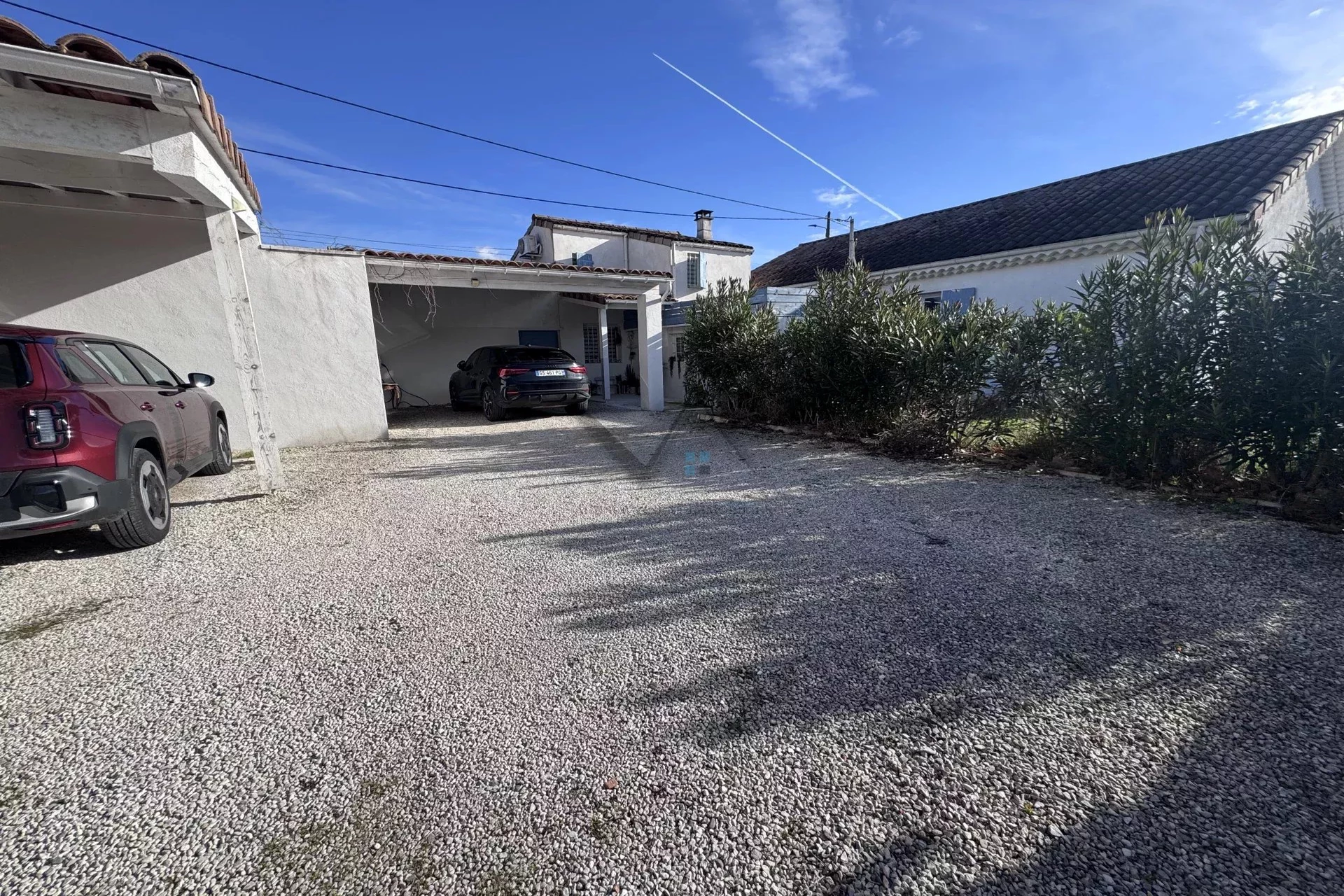 Une large cour à l’entrée permet de stationner plusieurs véhicules et d’accéder à un point de recharge grâce à une borne de recharge électrique.