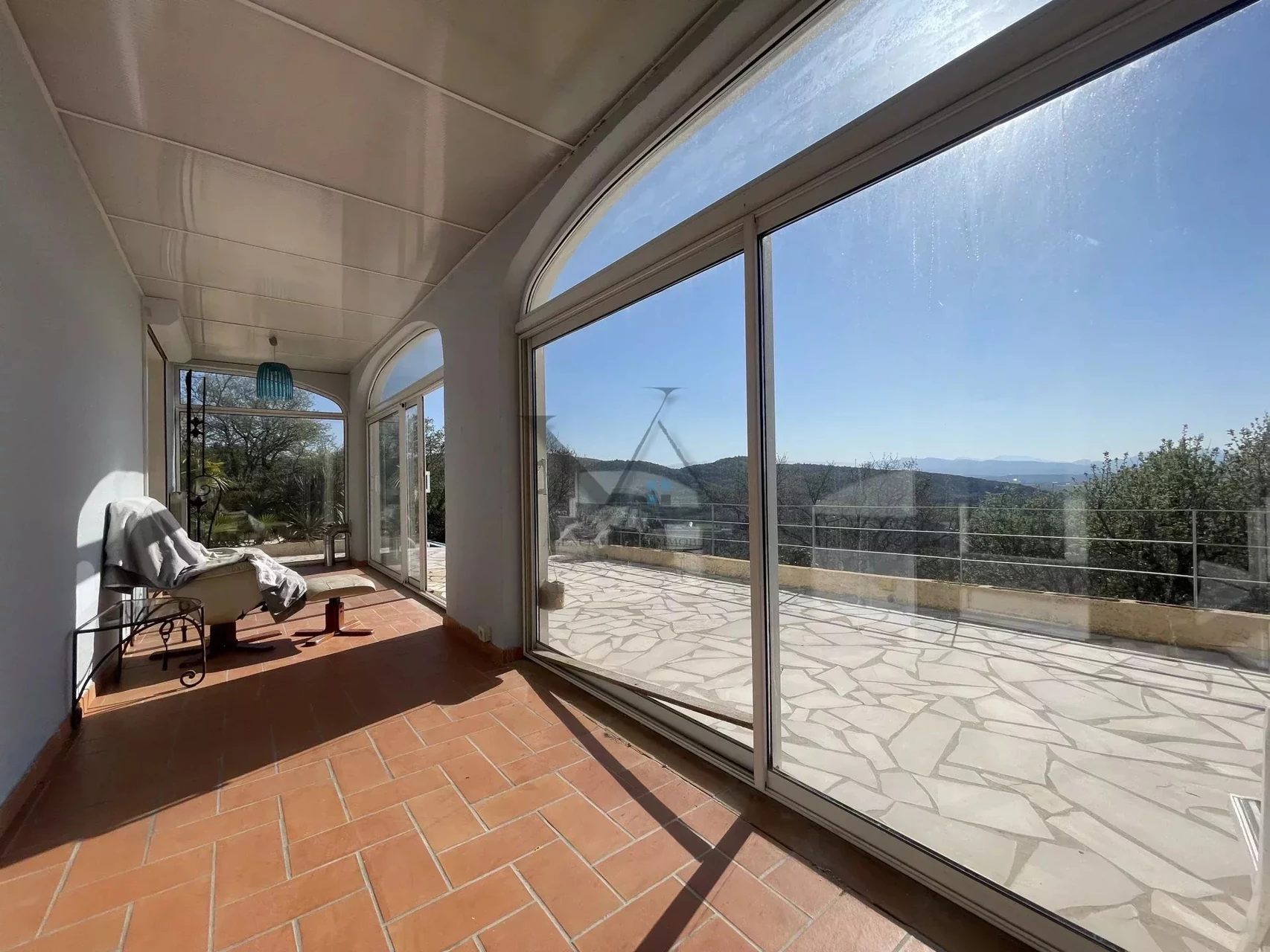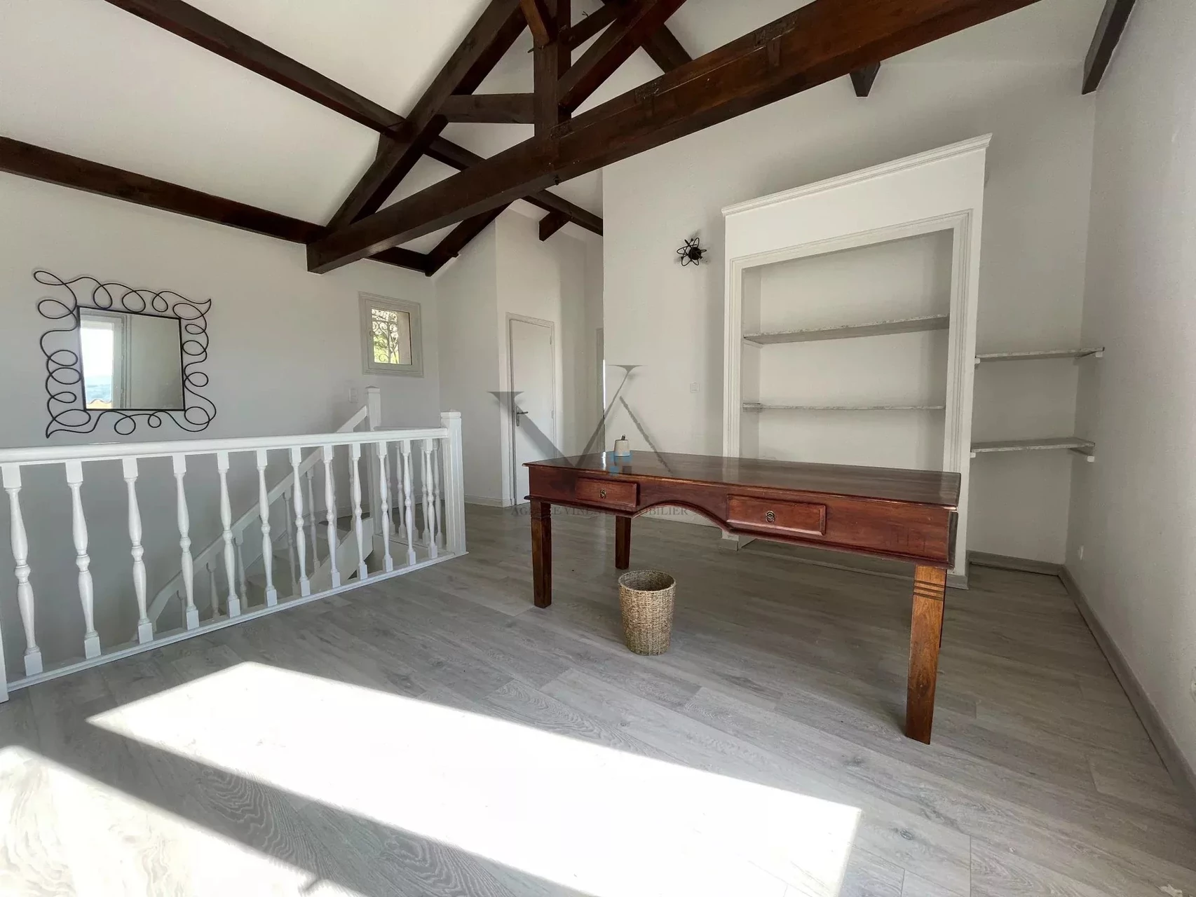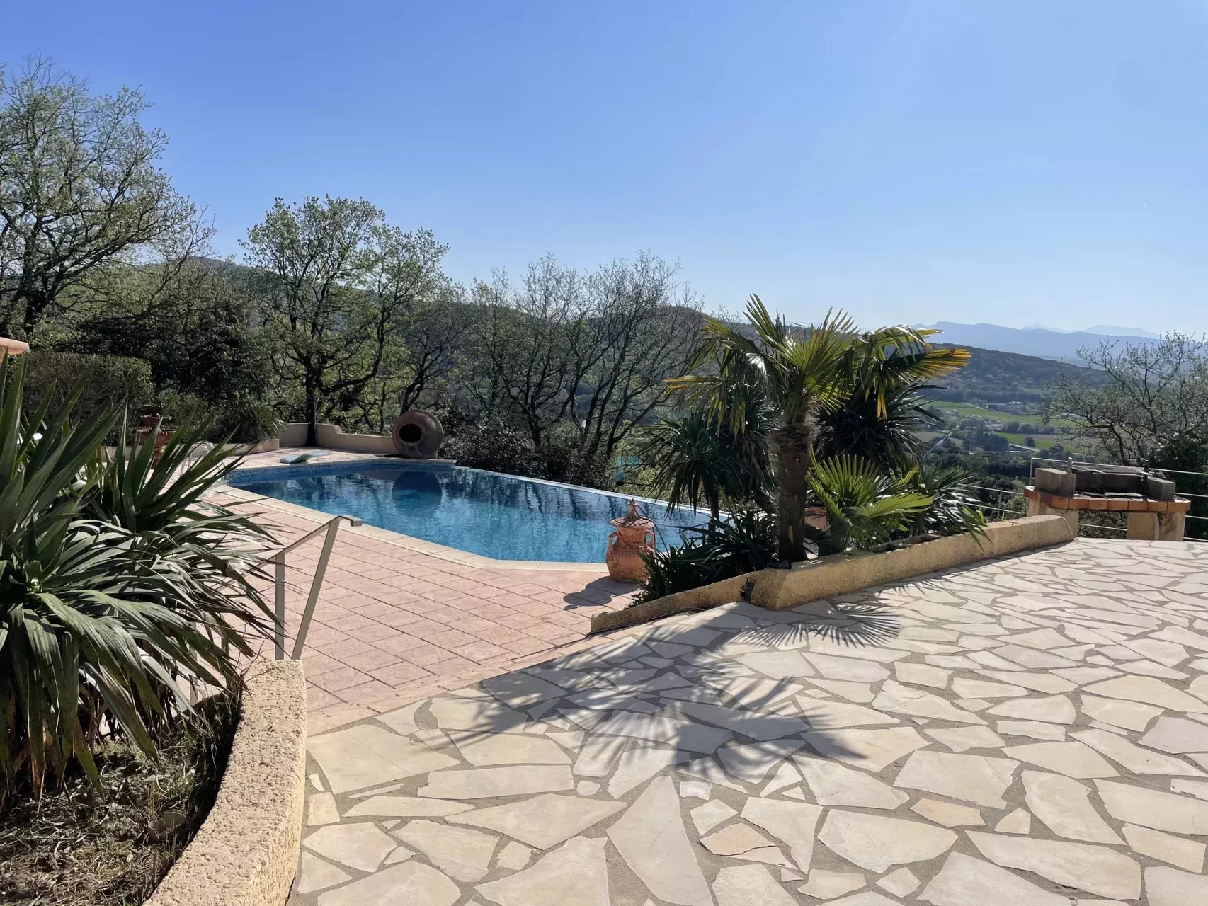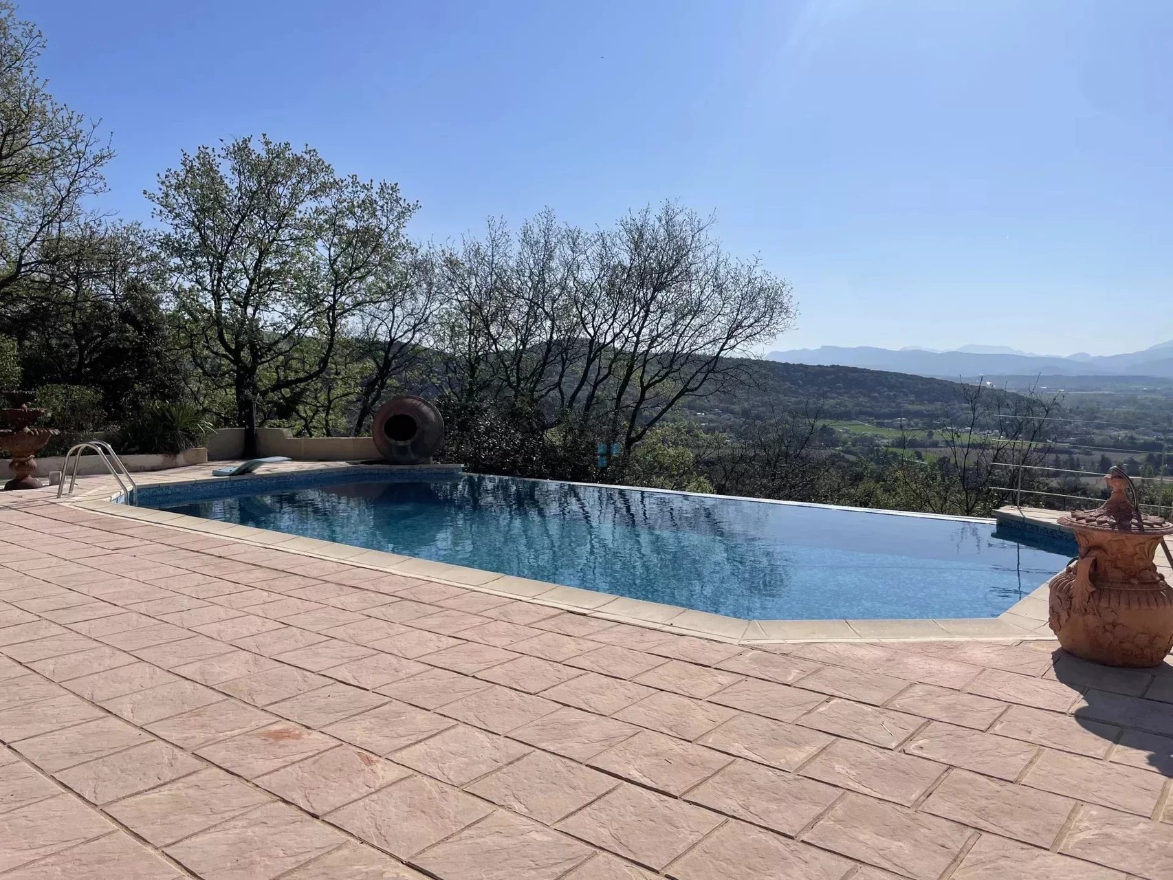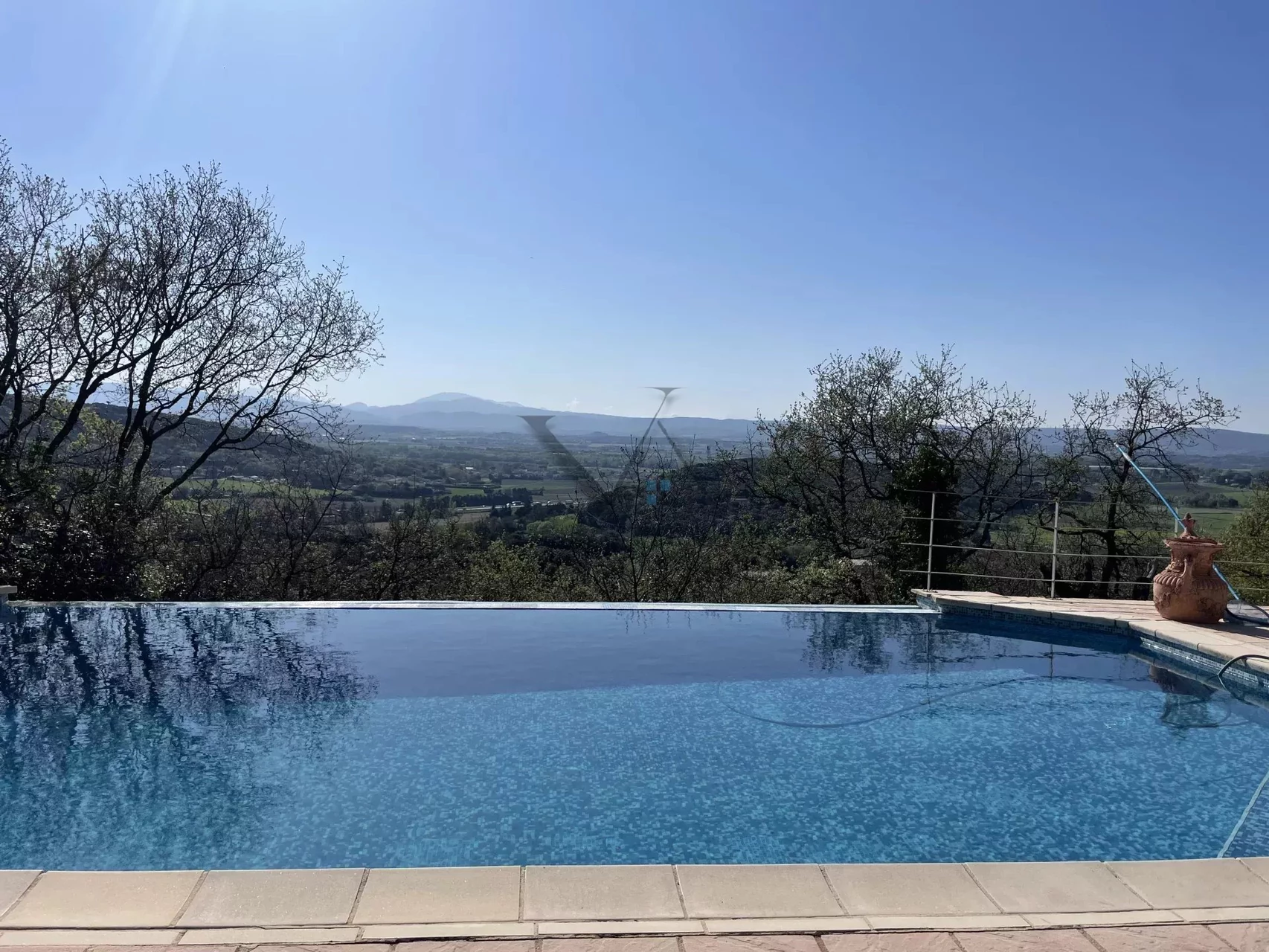 Sur la colline de Savasse avec vue dominante, maison de 205 m² habitables avec garage de 55 m² sise sur une belle parcelle arborée de 8150 m² avec piscine à débordement, pool house avec cuisine équipée et jacuzzi 6 places.