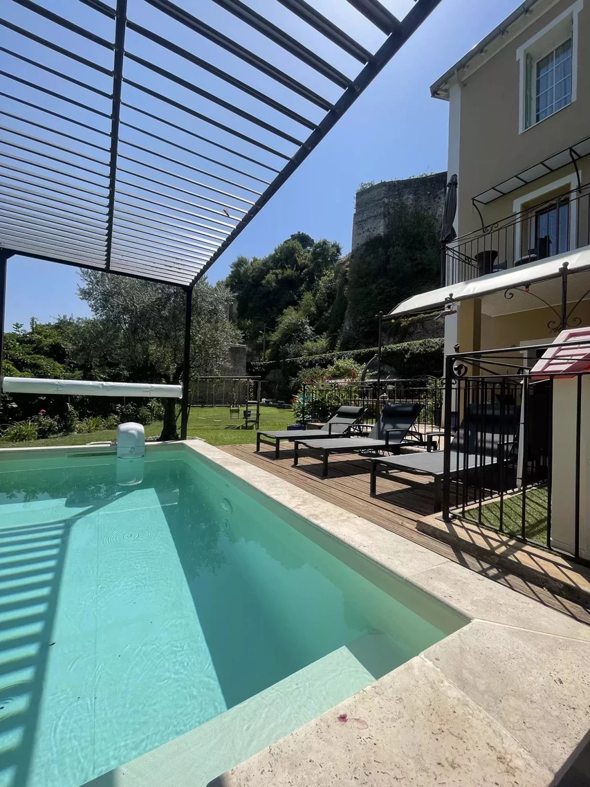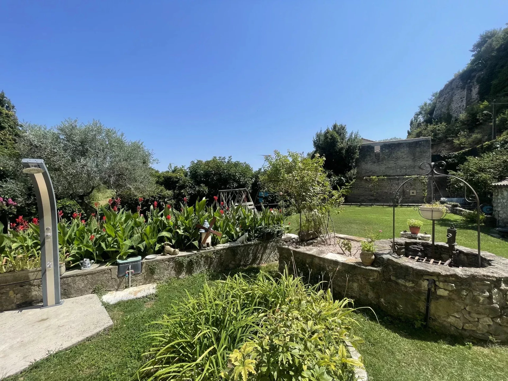 Édifiée sur une parcelle de 870 m², elle dispose d’une piscine, d’un terrain de boules et d’un jardin agrémenté d’un système d’arrosage intégré.