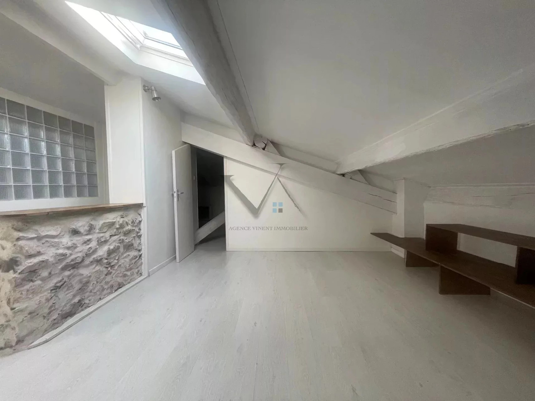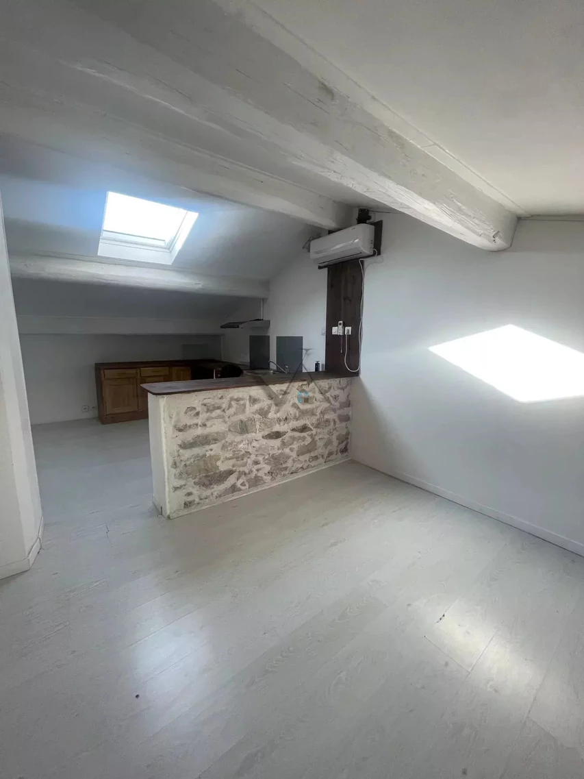 Near the city center, Avenue d'Espoulette, in a small old building, type 2 apartment with sloping ceilings and very atypical, with a living area of 34 m², located on the 2nd floor without lift, comprising: open kitchen/living room and dining area, a large bathroom with WC and a bedroom with plenty of storage. Individual electric heating + reversible air conditioning in the living room - The prov./charges include cold water - AVAILABLE JULY 1, 2022 -